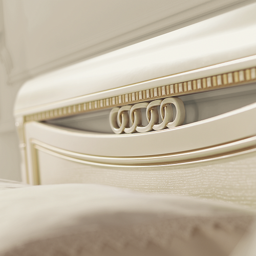 Кровать с низким изножьем Florence Bianco Флоренция – это настоящая находка для ценителей мебели, выполненной в классическом итальянском дизайне. Кровать выполнена в кремовом цвете, что подчеркивает чистоту и утонченность патинированных золотом линий. Изголовье кровати украшено декоративной вставкой в обрамлении изысканного узора. Детали изголовья, ножки и декоративные элементы изготовлены из цельной древесины, детали каркаса и изголовья шпонированные натуральным ясенем. В комплектацию кровати включено металлическое ортопедическое основание с латами из березы.